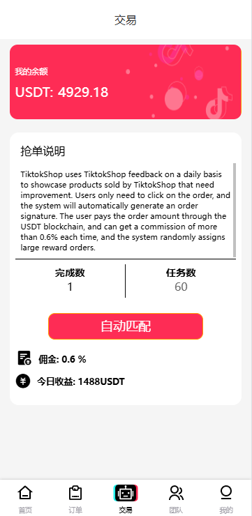新版多语言 全新抢单刷单系统 爆火的app刷单 订单自动匹配 海外刷单源码