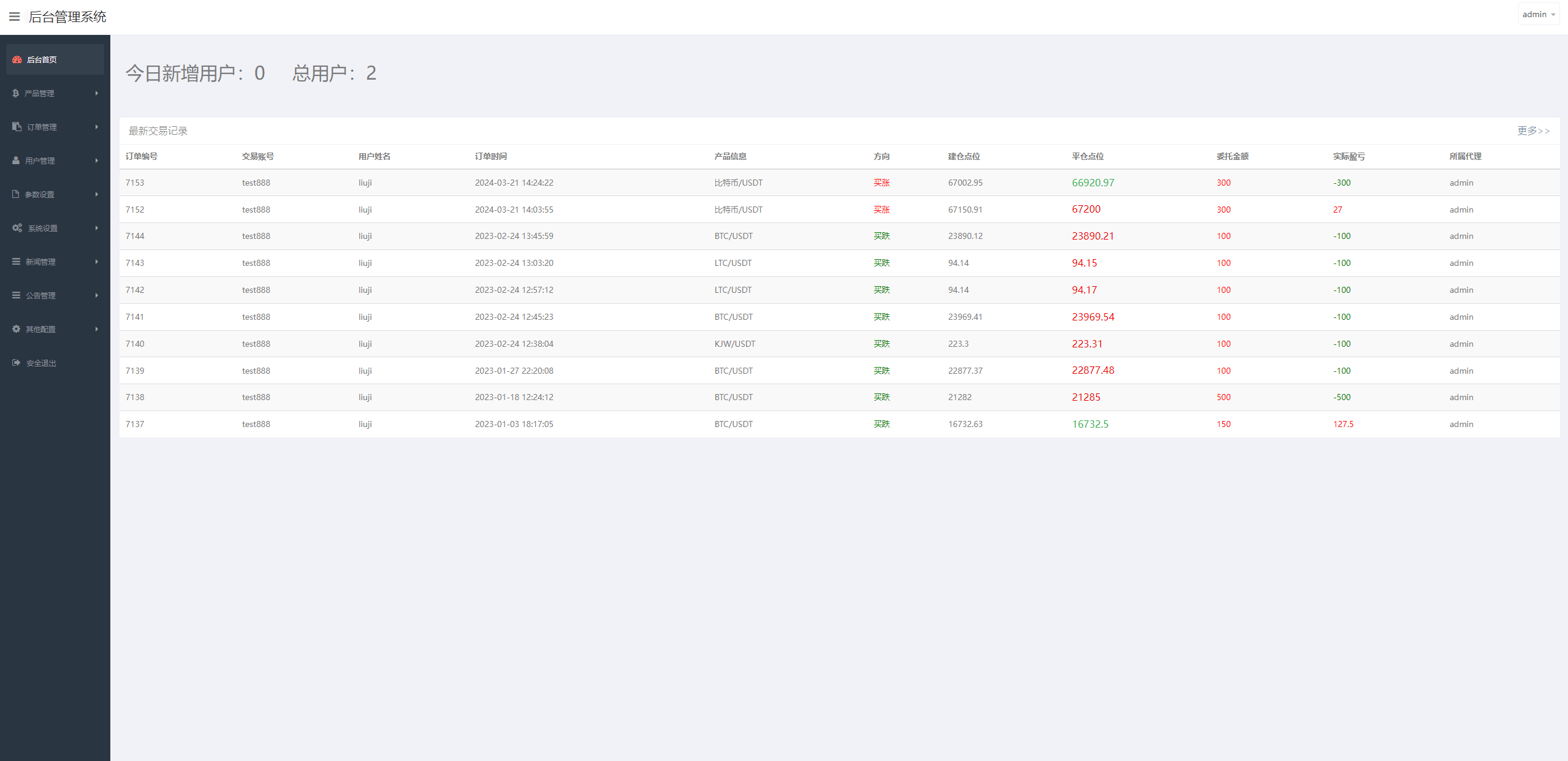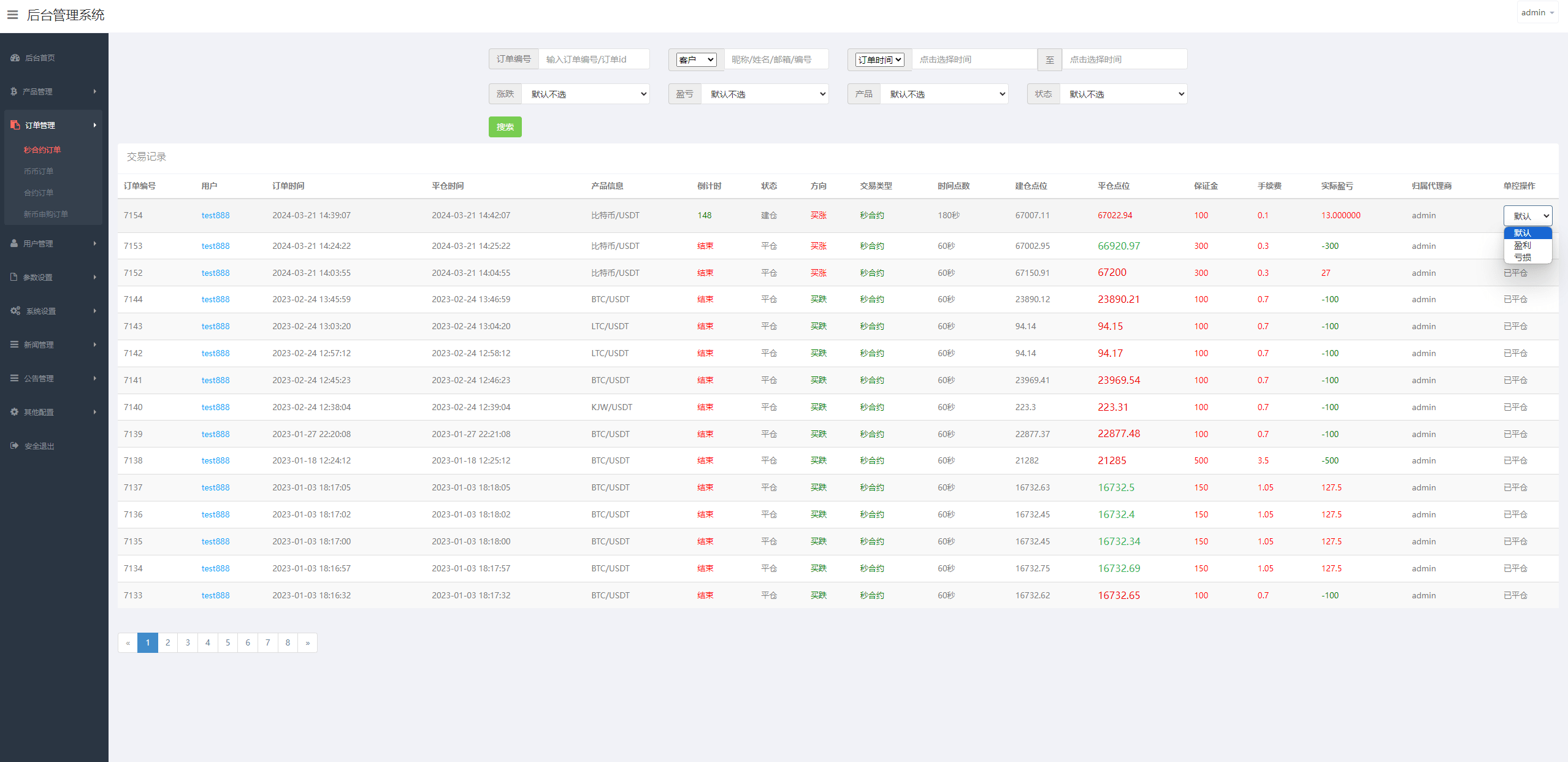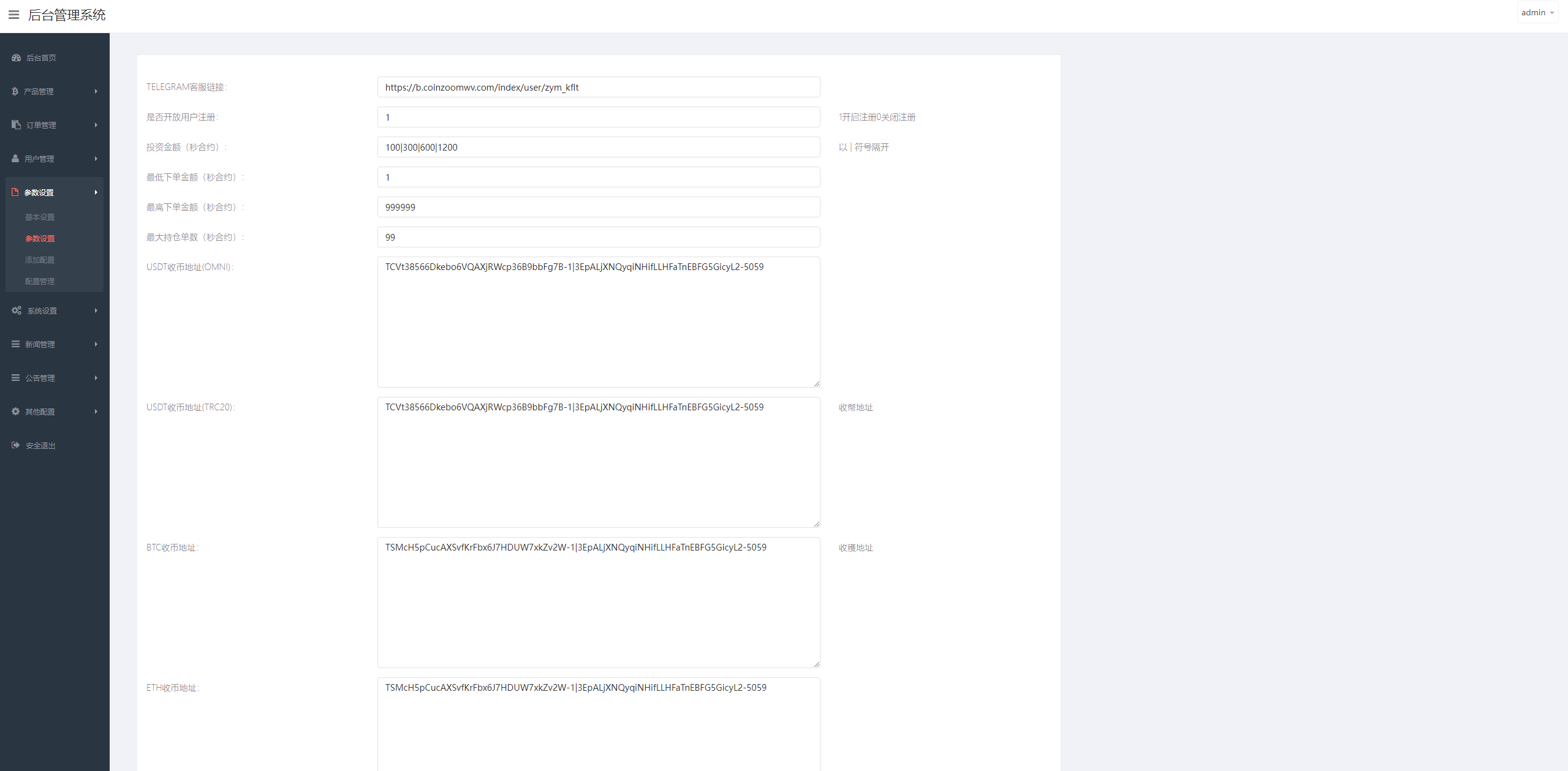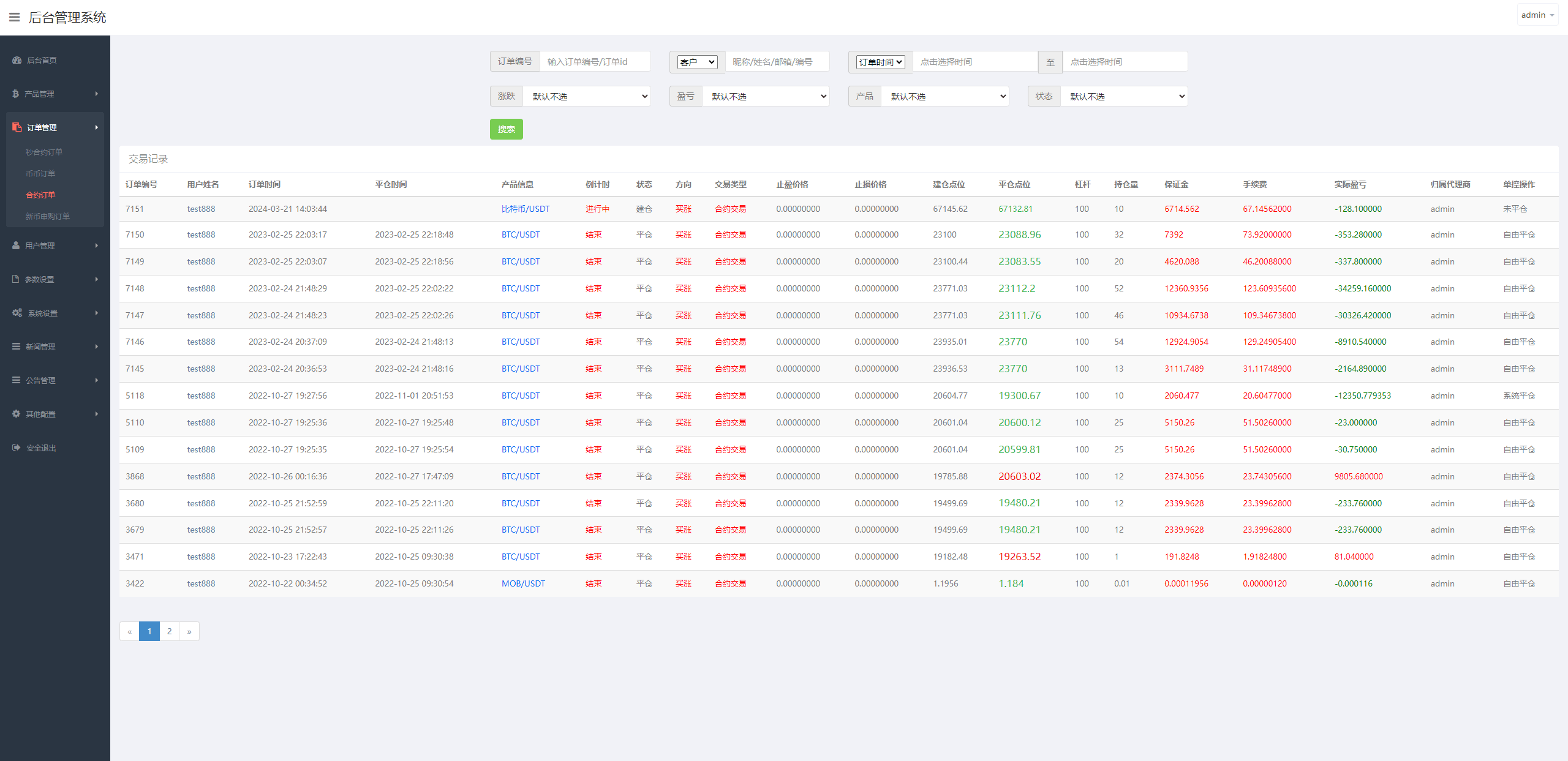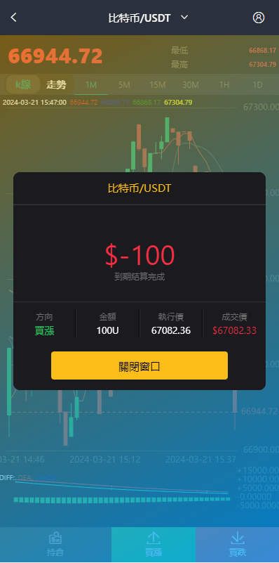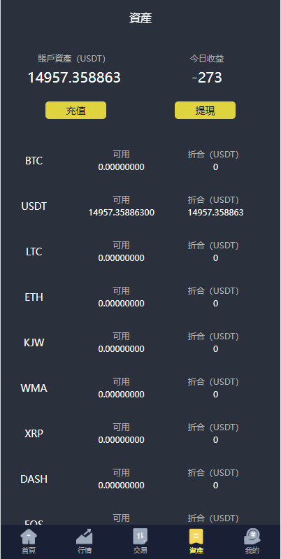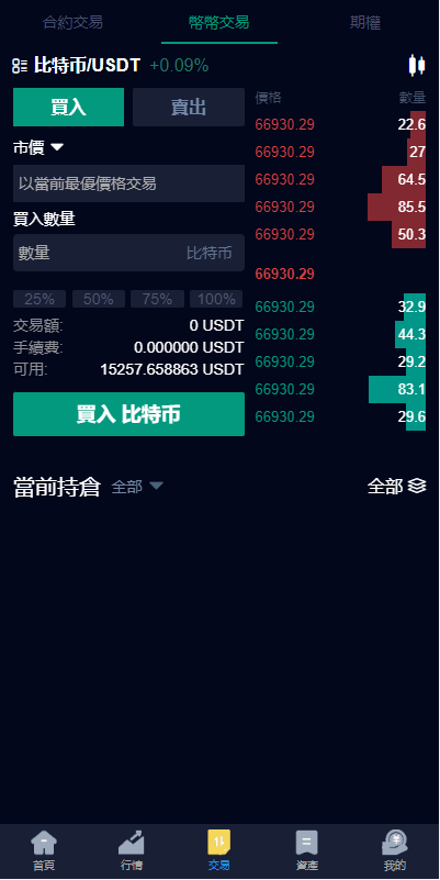 系统支持币币交易、合约交易、期权交易、投资理财、在线客服、新币申购等功能
